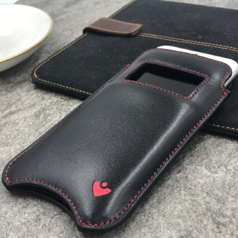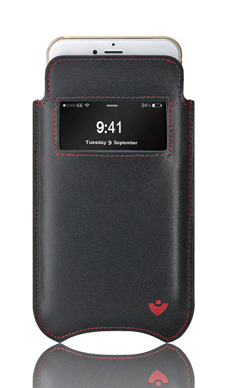 iPhone 6/6s Sleeve Wallet Window Case in Black Leather | Screen Cleaning Sanitizing Lining