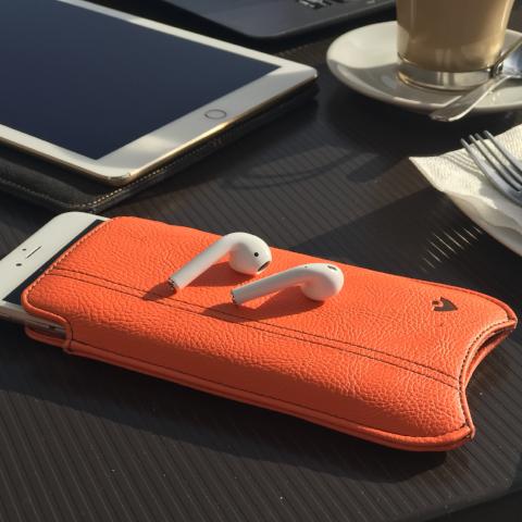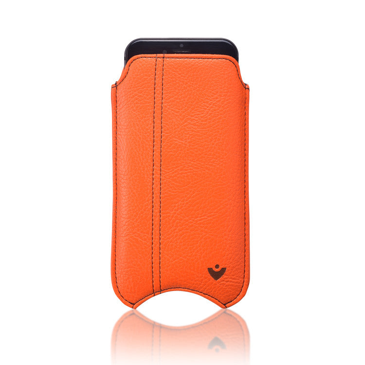 iPhone 6/6s Case Orange Vegan Leather Screen Cleaning Sleeve | protective sanitizing lining