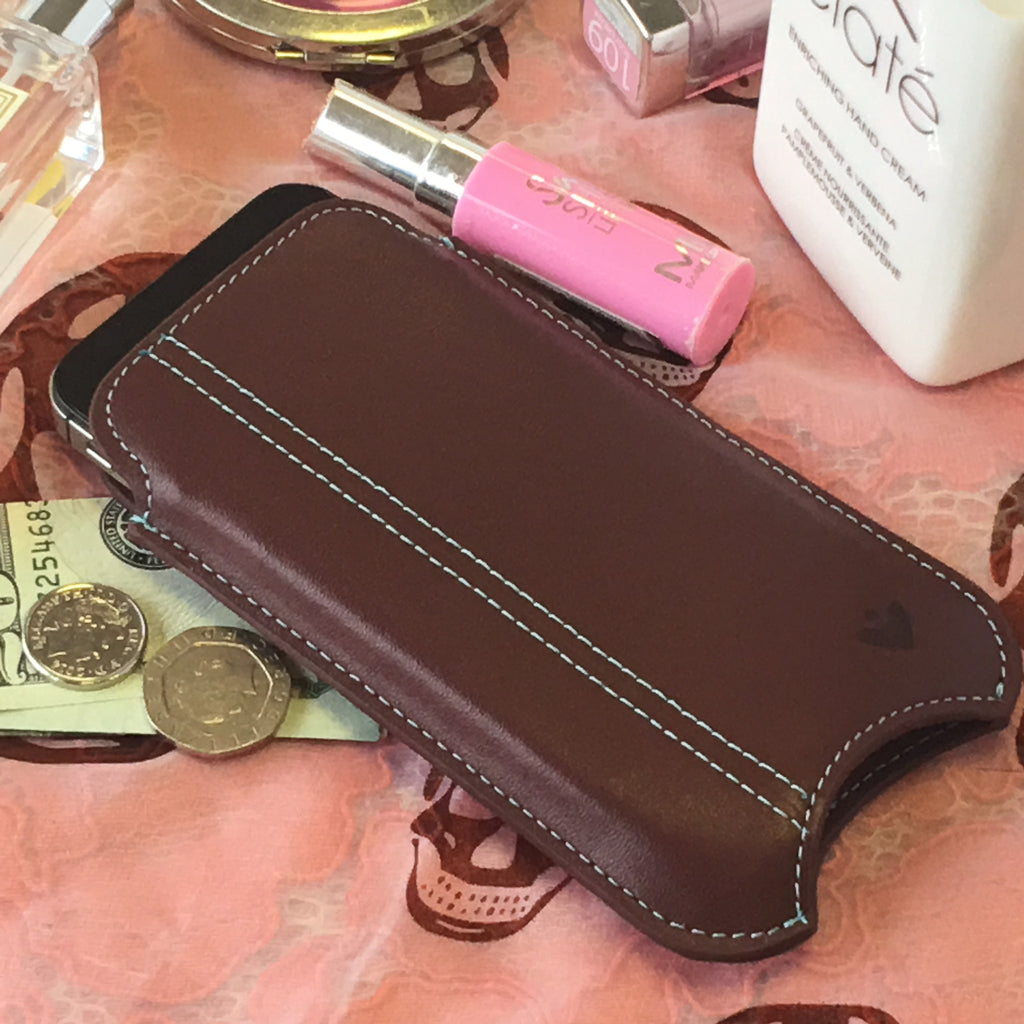 Luxury protection for your iPhone SE, 5s from the bumps and scrapes of everyday life is made easy with this stunning luxury handcrafted genuine USA Napa Leather pouch case, which is soft to touch in a rich Burgundy shade. The best iPhone leather pouch gift for him or her.