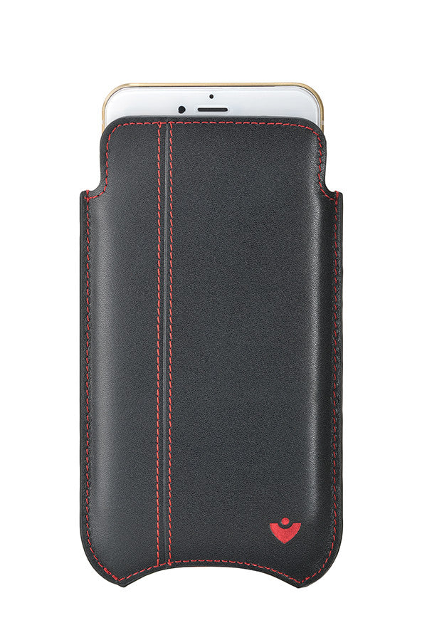 Luxury protection for your iPhone SE, 5, 5s from the bumps and scrapes of everyday life is made easy with this stunning handcrafted Napa Leather wallet pouch designer case, which is soft to touch in a luxurious shade of Black. With quality, exposed red stitching and shock resistance lining, this case is stylish and durable, looking after your device all day long.