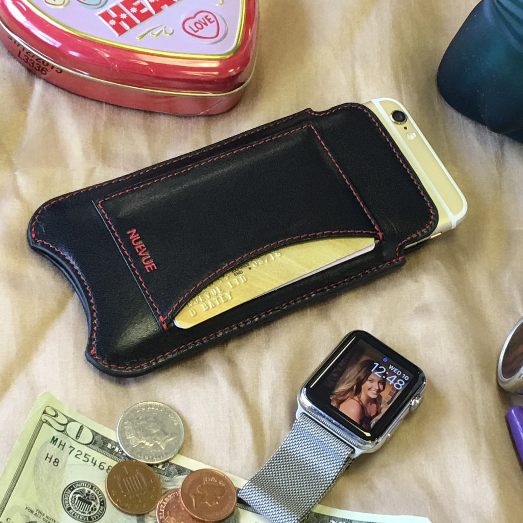 iPhone SE-1st Gen, 5 Sleeve Wallet Case in Black Leather | Screen Cleaning and Sanitizing Interior.