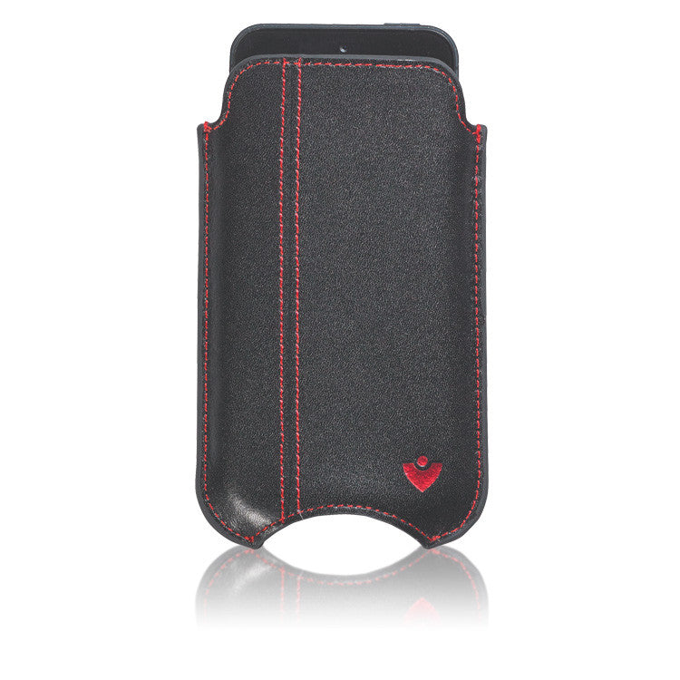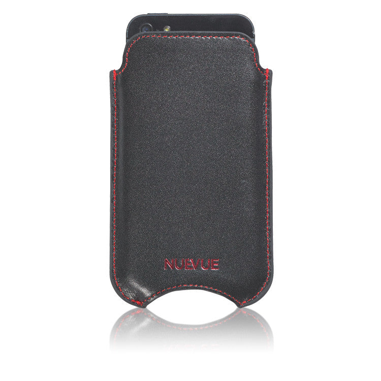 iPhone SE-1st Gen, 5 Pouch Case in Black Napa Leather | Screen Cleaning and Sanitizing Lining.