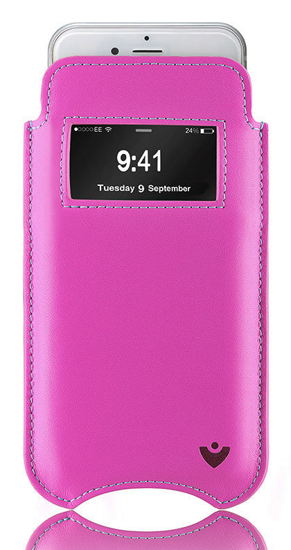 iPhone 6/6s Sleeve Case in Pink Napa Leather | smart window | Screen Cleaning Sanitizing Lining