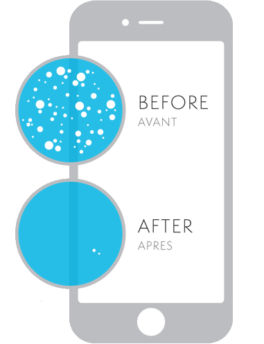 Only a NueVue case can give you sparklingly clean screen and sanitized device that's free from dangerous bacteria and viruses that can make you sick or pass to others.