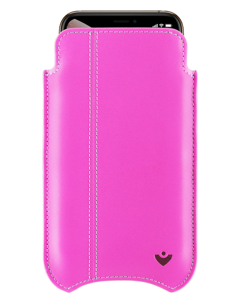 This beautifully handcrafted Hot Pink napa leather iPhone Xs Max pouch case is designed to protect your iPhone from the knocks and bangs of everyday life, and avoid damage to that all important, expensive to repair front screen and back glass.