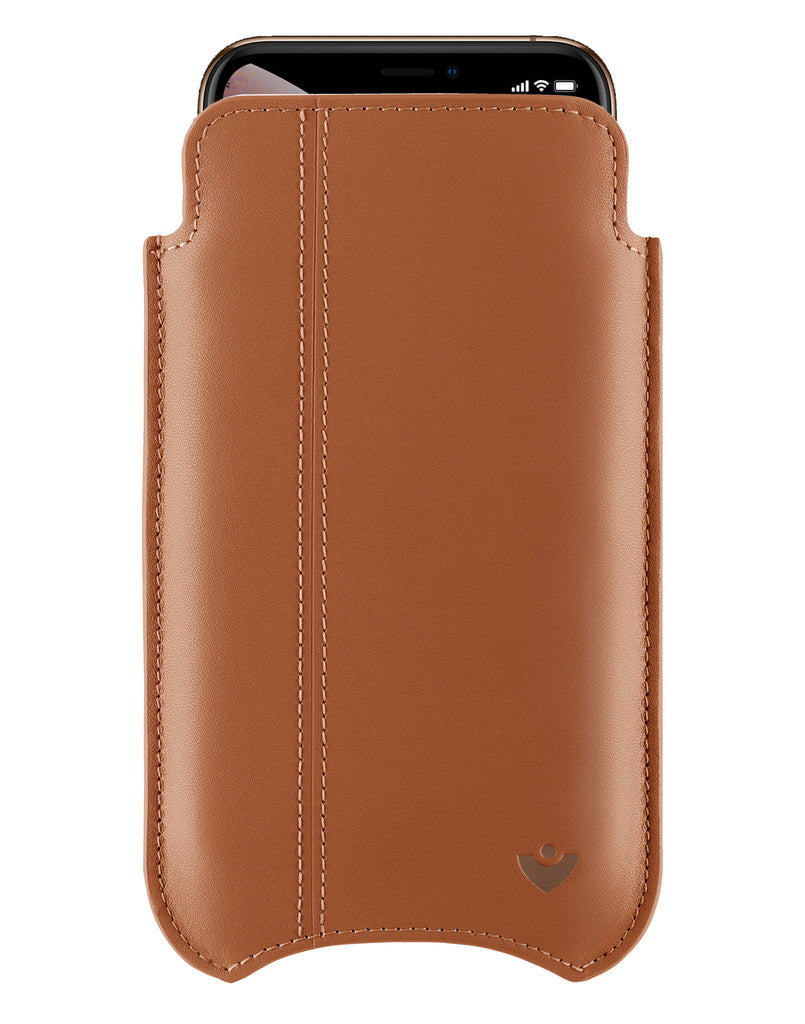 This beautifully handcrafted Tan napa leather iPhone 11 Pro Max and iPhone Xs Max pouch case is designed to protect your iPhone from the knocks and bangs of everyday life, and avoid damage to that all important, expensive to repair front screen and back glass.