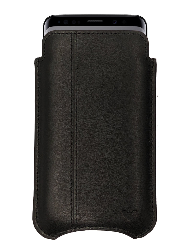 You'll love this Pirate Black genuine USA Napa leather Samsung Galaxy Plus model phone case, compatible with both the Samsung Galaxy S9+ and Samsung Galaxy S8+ models. Keeping your phone sanitized and looking like new.