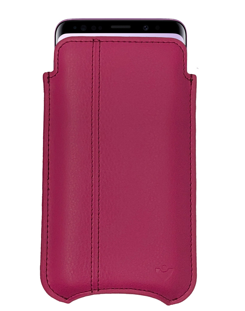 You'll love this Samba Red genuine USA Napa leather Samsung Galaxy phone case, compatible with both the Samsung Galaxy S9 and Samsung Galaxy S8 models. Keeping your phone sanitized and looking like new.
