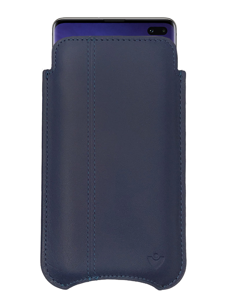 You'll love this Blueberry Blue genuine USA Napa leather Samsung Galaxy S10+ phone case, because it will keep your phone sanitized and every time you take your phone out of the case, the screen will be clean, looking like new.
