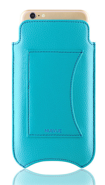 iPhone 8 | 7 Sleeve Wallet Case in Blue Faux Leather | Built-in Screen Cleaning Sanitizing Technology .