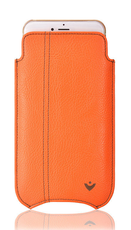 iPhone 8 / 7 Pouch Case in Orange Faux Leather | Screen Cleaning Sanitizing Lining.