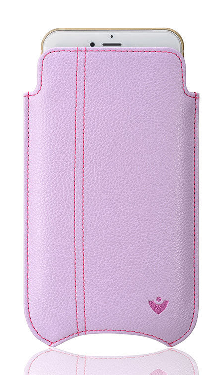 iPhone 8 / 7 Pouch Case in Purple Faux Leather | Screen Cleaning and Sanitizing Lining.