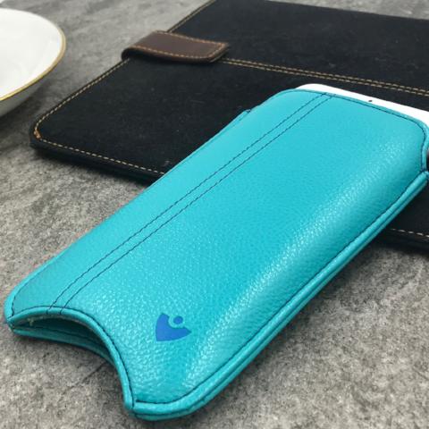 Apple iPhone 16 Pro Max Wallet Case in Teal Blue Vegan Leather | Screen Cleaning Sanitizing Lining